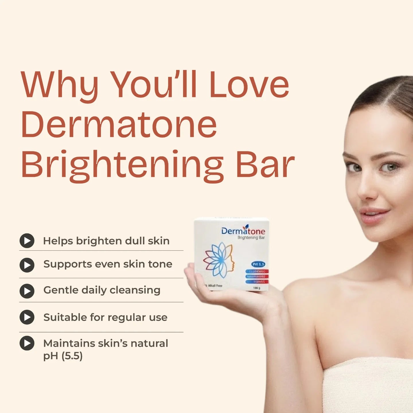 Unlike standard soaps, the Dermatone skin brightening soap in