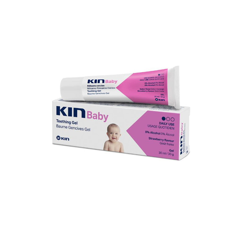 Kin baby is a baby oral gel used before the eruption of teeth in babies. It contains chamomile, sage extracts, and provitamin B5. With a strawberry flavor, it takes care and protects baby's gums and gives comfort during teething.