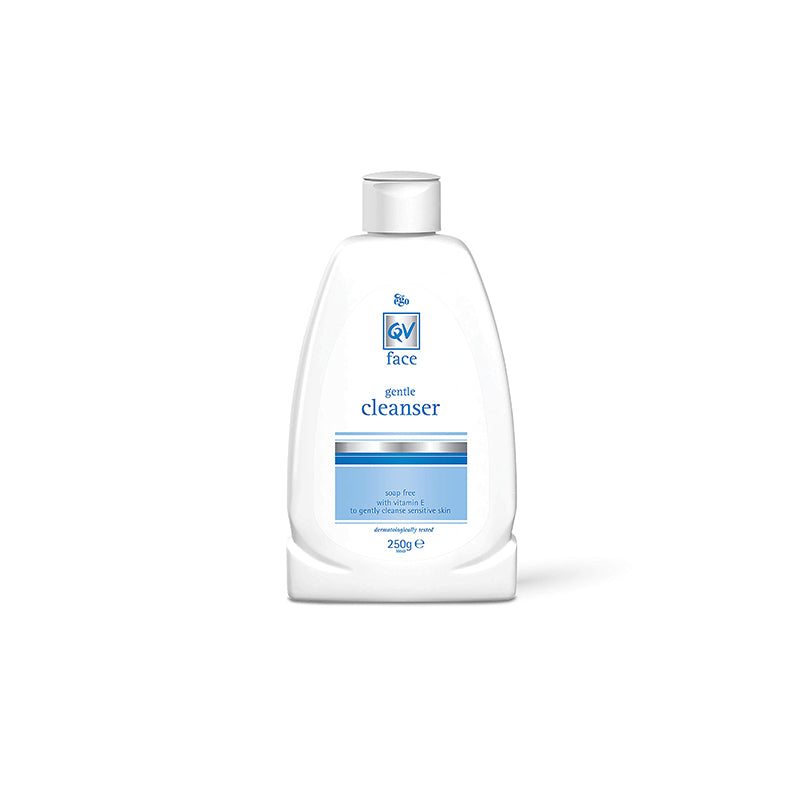 The QV Face Cleanser is designed for sensitive skin, being unscented and soap-free to maintain cleanliness and hydration. It contains vitamin E for skin repair and nourishment, suitable for all skin types, and leaves no residue upon removal.