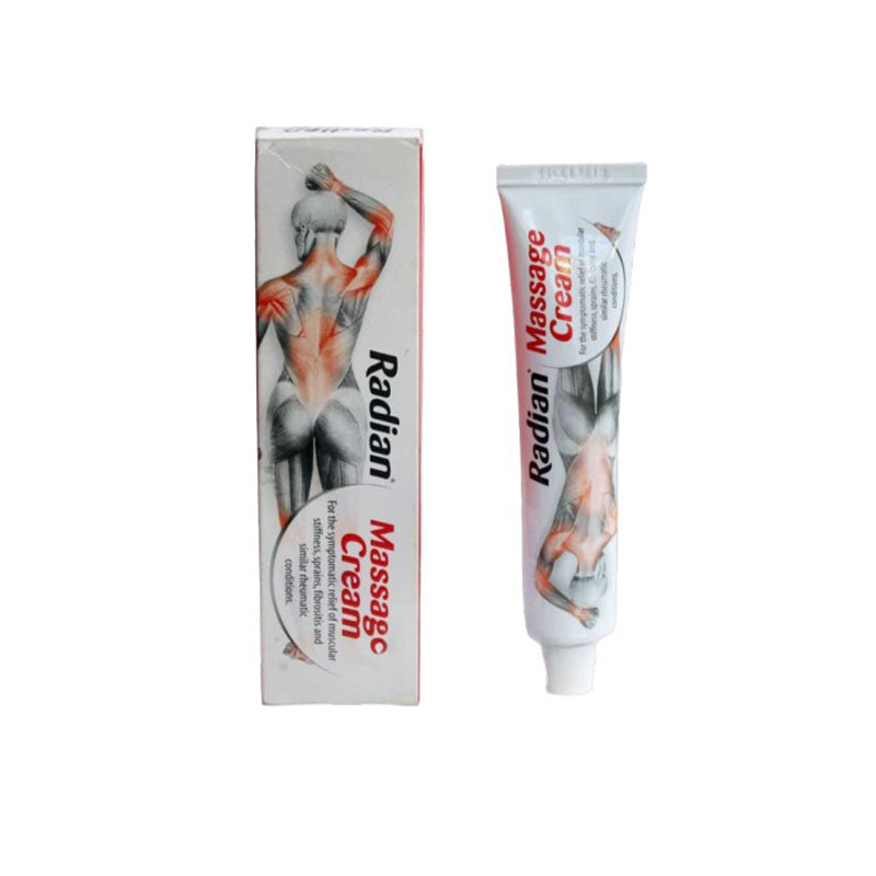 Radian Massage Cream is intended for the relief of muscle stiffness and pain. It is commonly used by individuals experiencing symptoms related to backaches, arthritis, strains, bruises, and sprains. The cream provides a warming sensation that helps increase blood flow and reduce discomfort.
