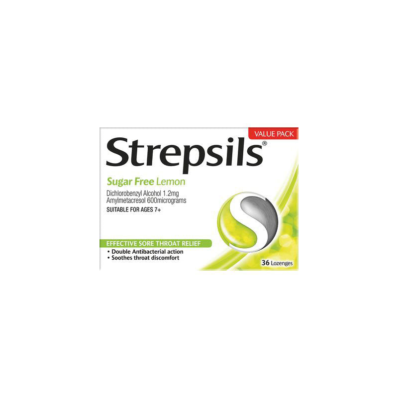 For fast, soothing and effective relief from the discomfort of sore throats and minor mouth infections. Strepsils Sore Throat Relief Sugar Free Lemon Flavour Lozenges contains two antibacerial agents to help kill bacteria that can cause sore throats and mouth infections. If you prefer a lozenge without sugar, try Strepsils Sugar Free Lemon. These tasty little lozenges contain effective antibacterial agents (Dichlorobenzyl alcohol 1.2mg and Amylmetacresol 600µg) that relieve discomfort of a sore throat and minor mouth infections. Available in pack size 16 or 36.