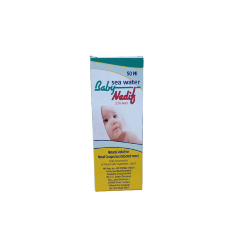 Baby Nadif Nasal Spray is specially designed to relieve infant and children nasal congestion. Baby Nadif Nasal Spray comes in an isotonic and hypertonic formula that mimics the cleaning effect of seawater and reduces oedema in the nose.