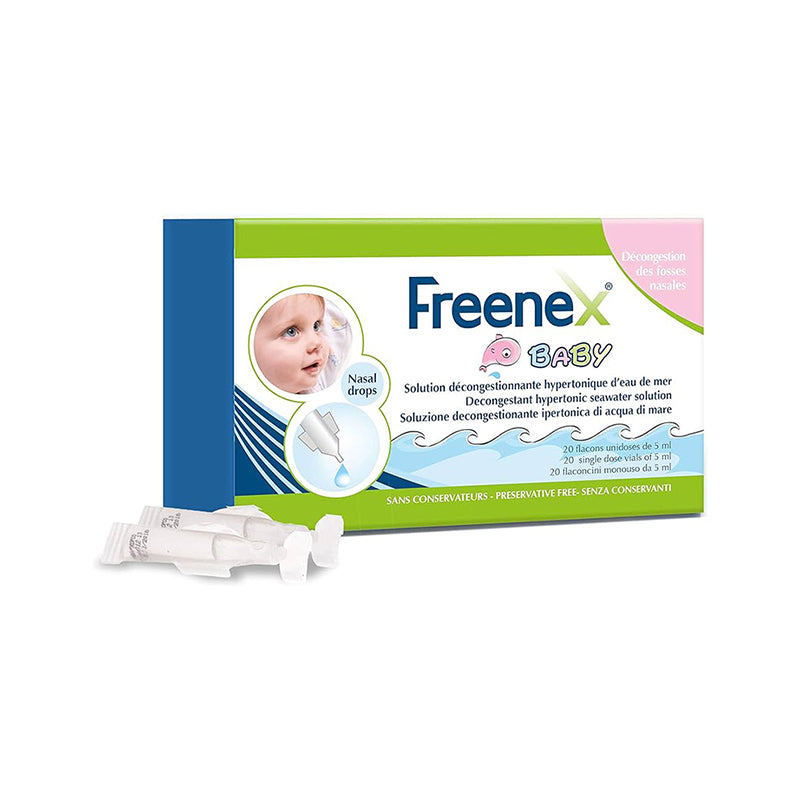 Freenex Baby is a water-based hypertonic solution of sea with a natural decongestant action on the nasal mucous membranes of babies and children