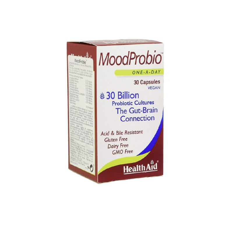 HealthAid® MoodProbio™ helps to supplement your diet to increase the ‘friendly’ bacteria, support the immune system, assist in the absorption of nutrients within the gut and boost mood, by providing 30 billion special strains of Acidophilus and Bifidobacteria (live microorganisms). MoodProbio™ also contains Fructo-Oligosaccharides (FOS) a prebiotic added to help support the growth of ‘friendly’ bacteria in the gastrointestinal tract.