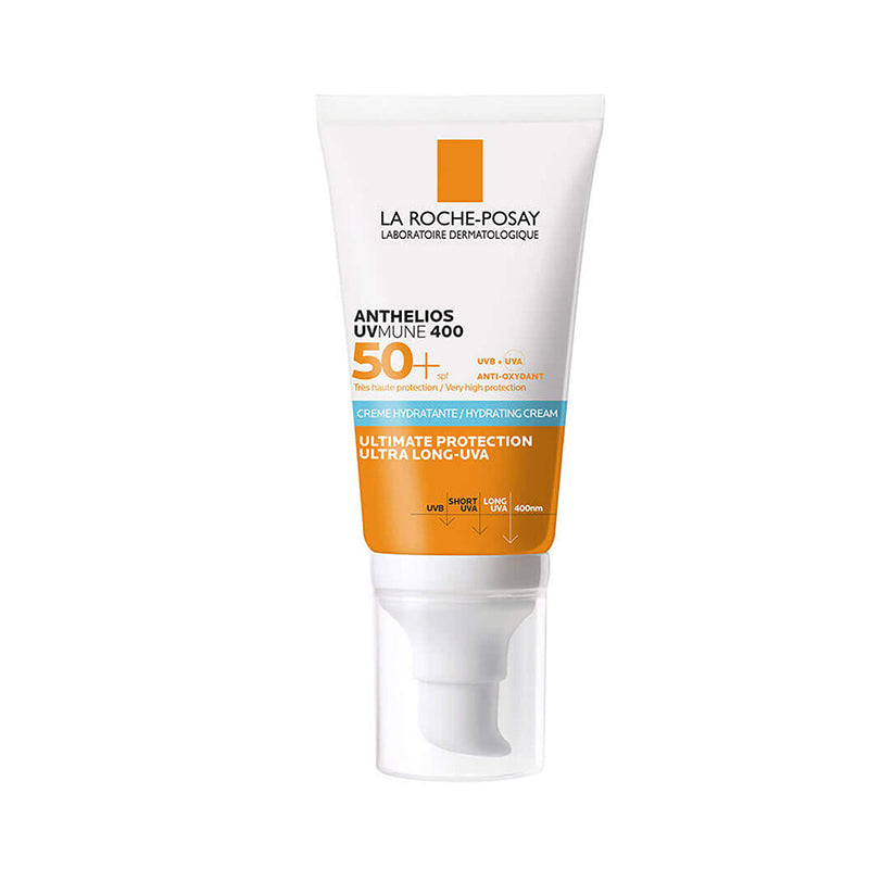 ANTHELIOS UVMUNE 400 HYDRATING CREAM SPF50+ NON PERFUMED: With NEW exclusive filter MEXORYL400. Our new UV filter against ULTRA LONG UVA. To help protect against UV induced damage. Our ultimate protection. (UVB + UVA + ULTRA LONG UVA).